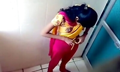 Some inexperienced Indian brunette gals peeing in the toilet on voyeur cam