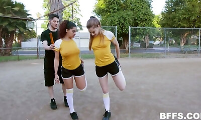 Mischievous trainer fucks duo of uber-sexy slim girlies after nice tennis game